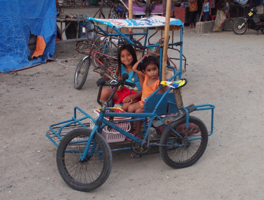 BMX and Sidecar Published April 14, 2014 at 1600 × 1210 in The Philippines: First Impressions Cute kids waiting for their dad outside take them home from the market